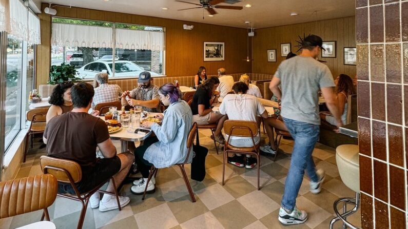 Vibe Check: Retro plates, handmade artwork, and high-energy brunch vibes.